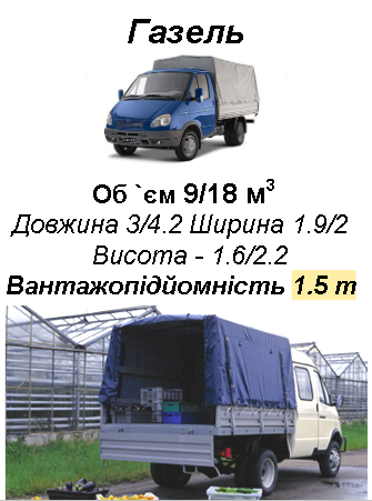 Доставка будівельних матеріалів Київ Газель: борт, тент, будка 3-4,2 м, піраміда (транспортування стекол, вікон, гранітних виробів ...). "Газель" - незамінний автомобіль для перевезення всіляких листів ДСП / ДВП / ОСБ плит / фанери / гіпсокартону ... Завдяки рівній підлозі бортової частини шириною 1.9 - 2 м, ці "полуторки" (вантажопідйомність 1.5 т) перевозять плазом те, що не під силу будь-якому суцільнометалевий мікроавтобусу. Корисний об'єм вантажного простору досягає вісімнадцяти - двадцяти кубічних метрів. Незручностями можна назвати високу, для завантаження вручну, розташування площини підлоги і низький рівень комфортабельності. Зате доступність ціни транспортування перекриває всі мінуси.